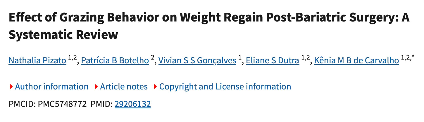 „În această analiză sistematică, rezultatele privind asocierea dintre comportamentul de „grazing” (ciugulire constantă) și recâștigarea greutății după operația bariatrică au fost consecvente în toate studiile,