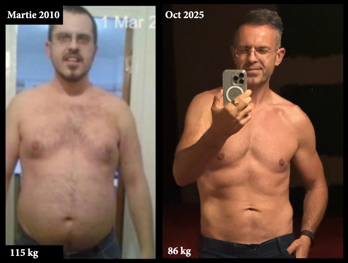 la 85-86 kg arăt bine pentru cineva care doar face 20 minute de exerciții de L-V acasă.