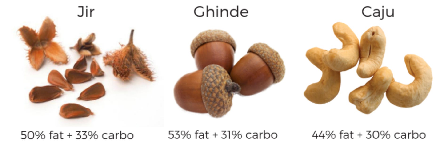 jir, ghinde și caju.