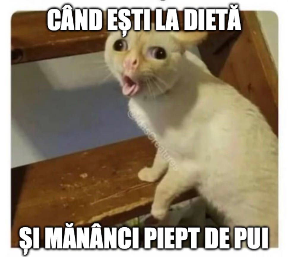 iubim o friptură grasă dar mâncăm cu noduri piept de pui sau ton;