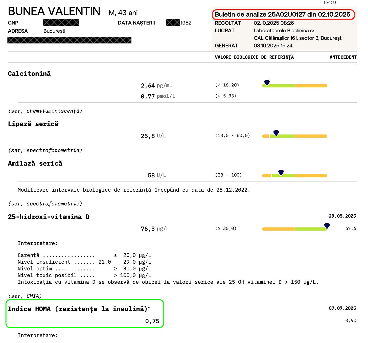 Iată rezultatele domnului nostru după 45 de zile de program. A slăbit de la 120 la 115 kg dar rezultatele analizelor sunt excepționale.