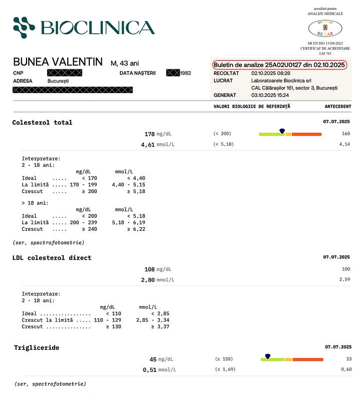 Iată cei mai importanți parametri pe care-i urmăresc să știu că sunt sănătos, nu mi se lipește grăsimea pe artere și nu fac diabet.
