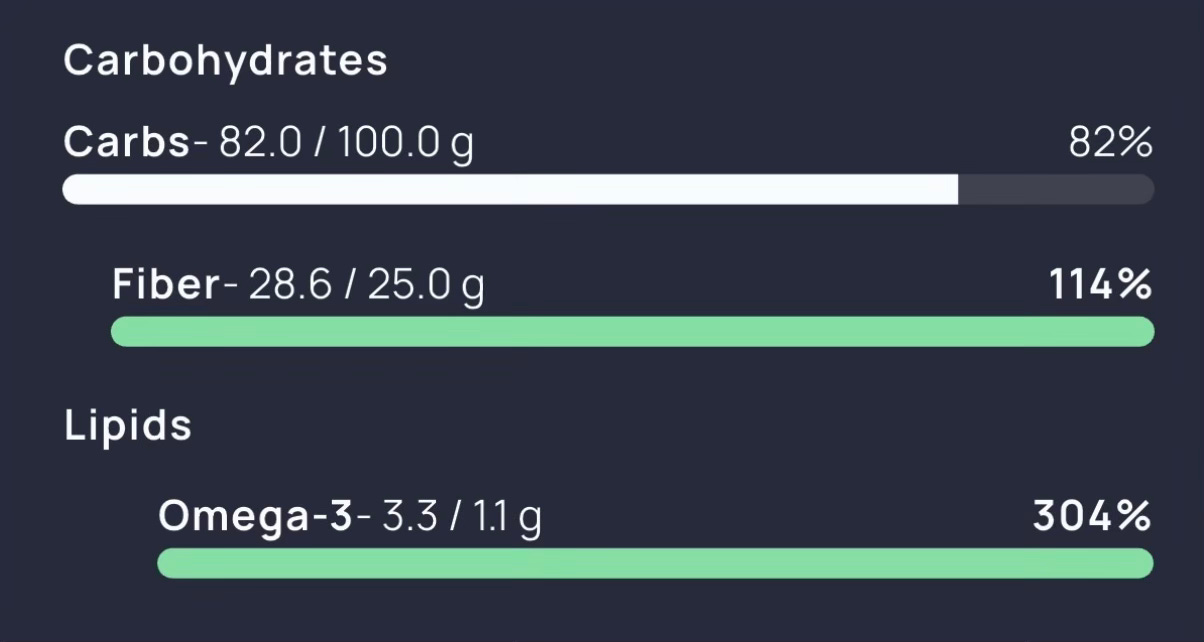 Uite mai jos și cantitățile de fibre și omega-3. Exact ca la carte!