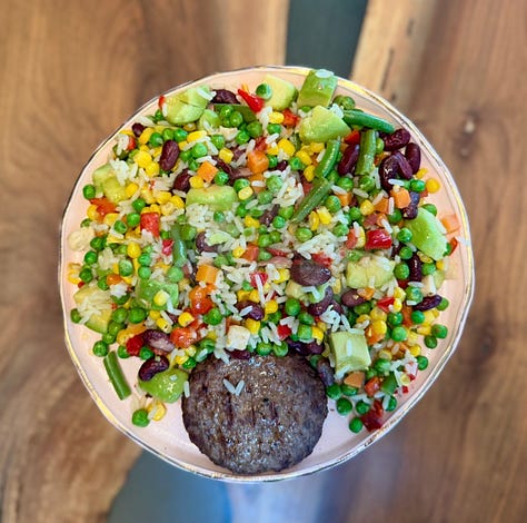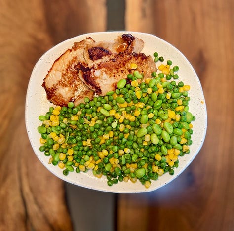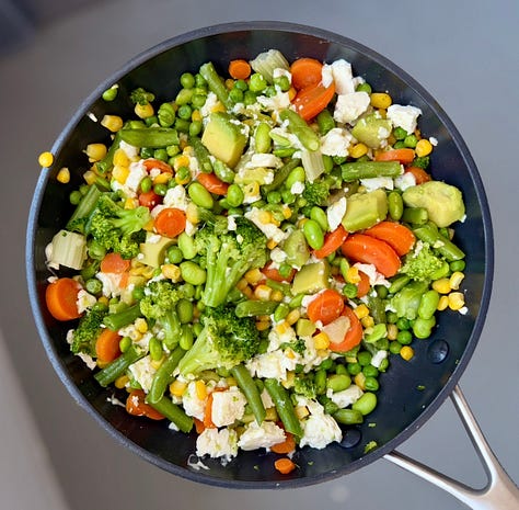 Cum sunt mixurile de legume congelate pe care le vezi în pozele mele, cu mazăre, porumb și un pic de fasole.