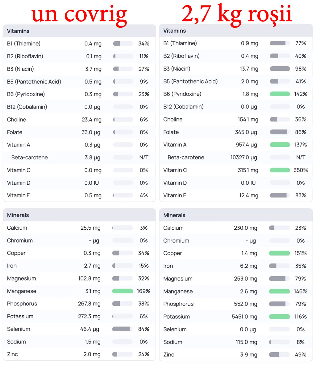 Propun să vedem cum arată acele calorii dpdv al miconutrienților.
