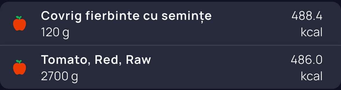 1 covrig cald = 2.7 kg roșii = 489 calorii.