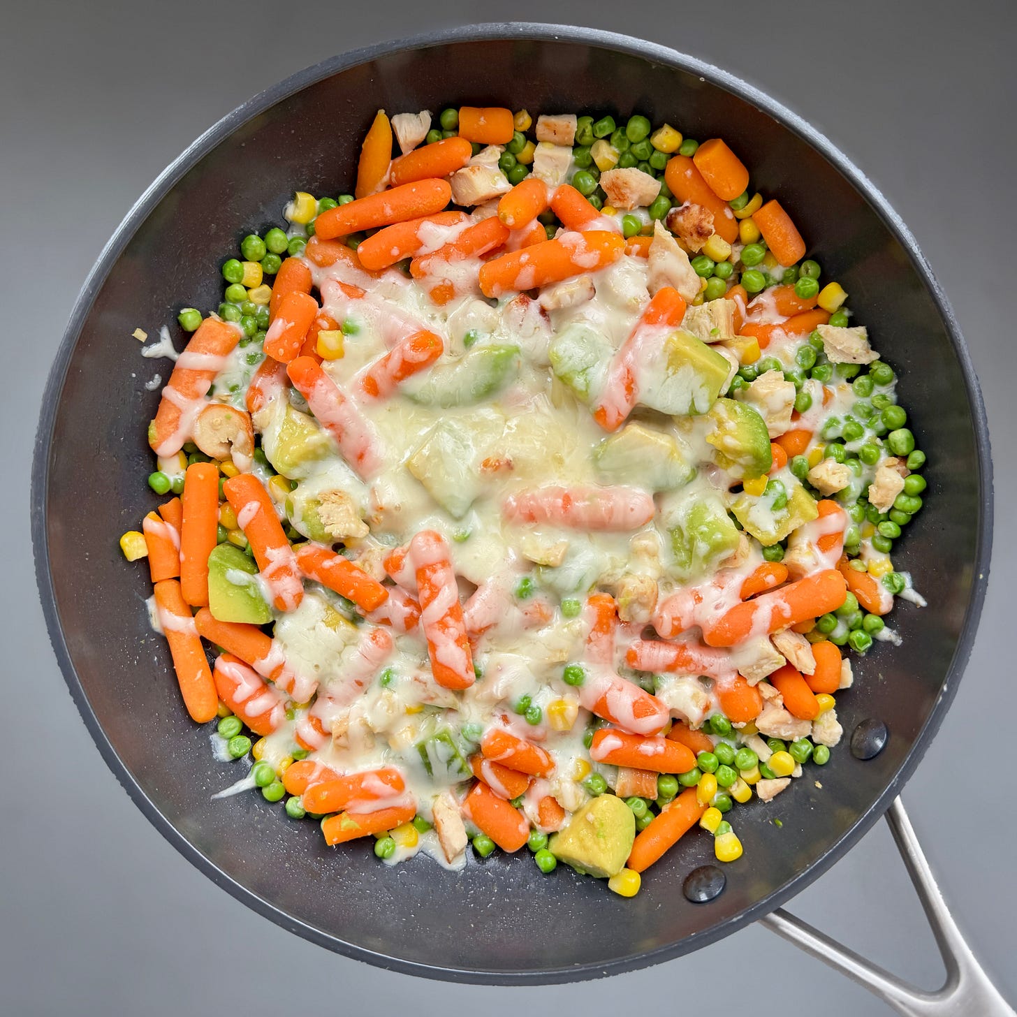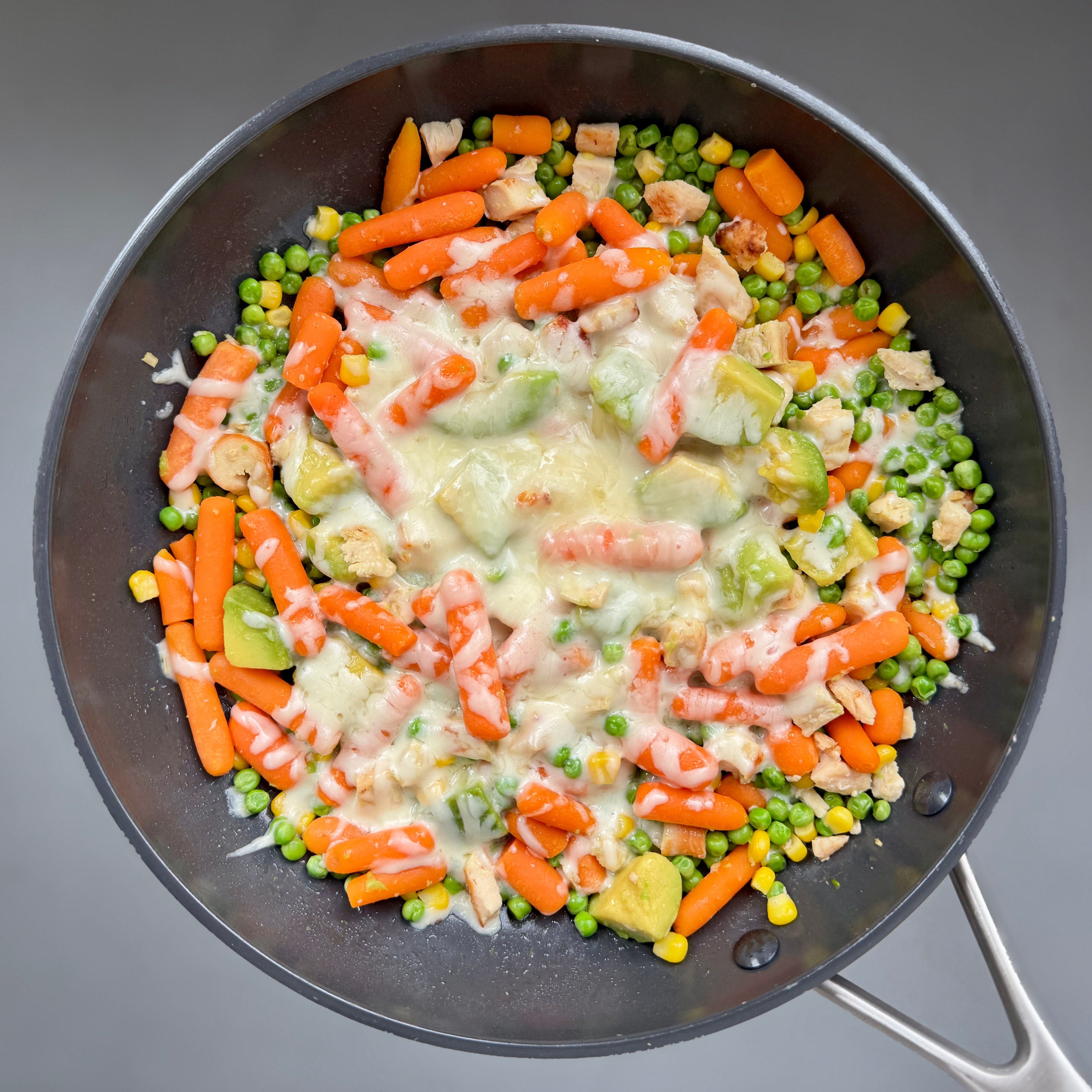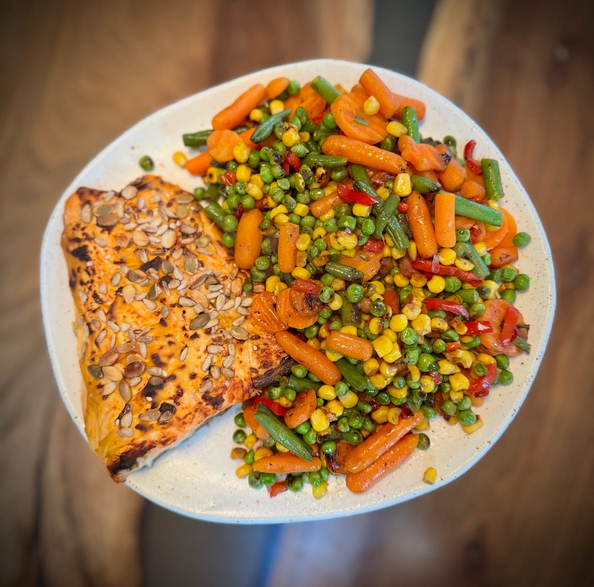 Atât a durat să pun somonul la Airfryer și legumele congelate în tigaie cu capac.
