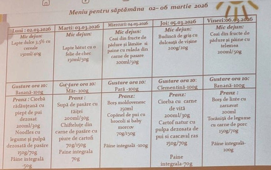Bănuiesc că nu te-ai uitat pe meniul de la grădiniță. Dacă te uitai știai că zilnic primesc ceva dulce.