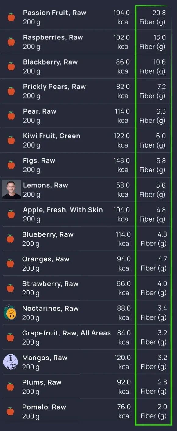 Uite, dacă vrei să afli câte grame de fibre și câte calorii conțin cele mai bogate fructe la 200g vezi mai jos,