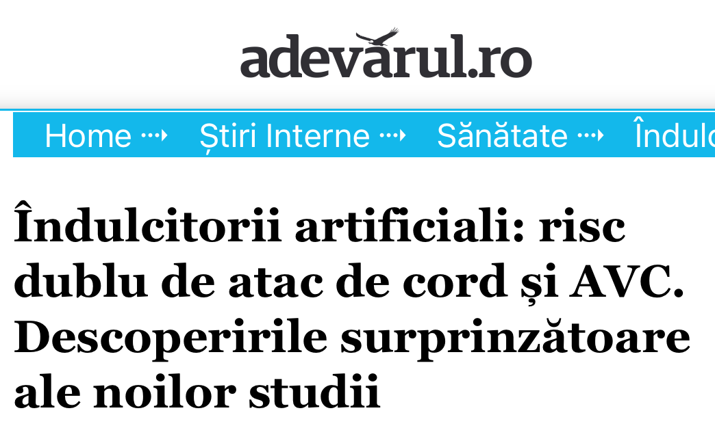 De un risc aproape dublu de atac de cord, accident vascular cerebral și deces la persoanele care consumă cele mai mari niveluri de îndulcitor.”